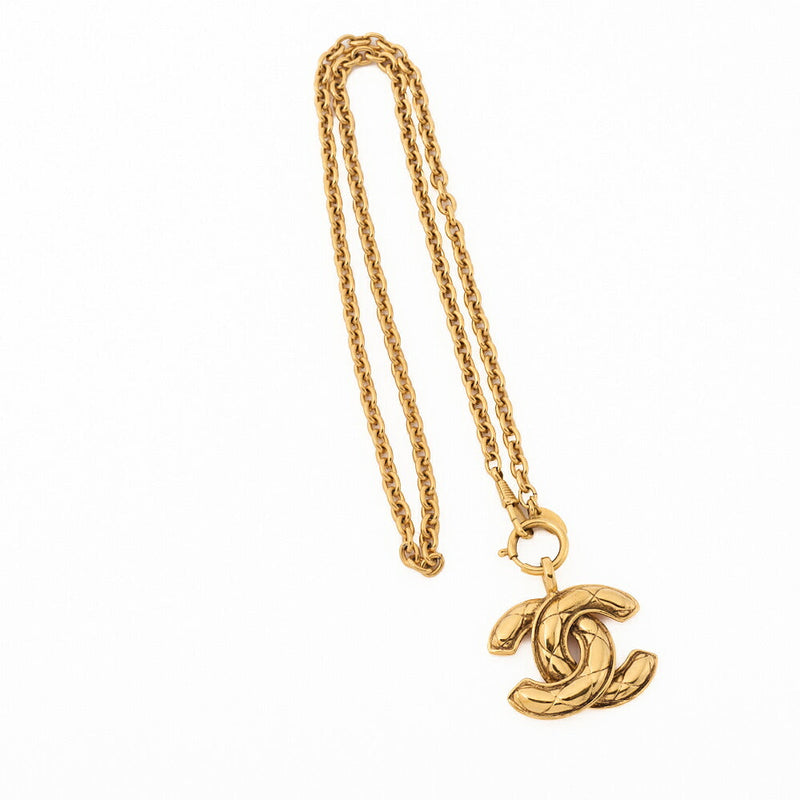 Pre-Owned Halskette, Coco Mark Matelasse, Vergoldet, Gold, Goldfarbene Hardware, Pre-Owned
