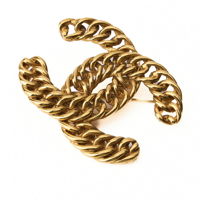 Gebrauchte Brosche Coco Mark Kette vergoldet goldfarbene Hardware gebraucht