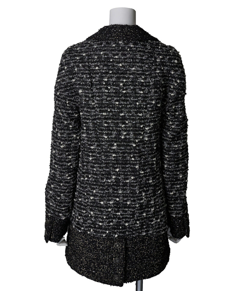 Gebrauchte Manteljacke, Coco Mark Button, Tweed, Nylonseide, Schwarz, goldfarbene Hardware, gebraucht