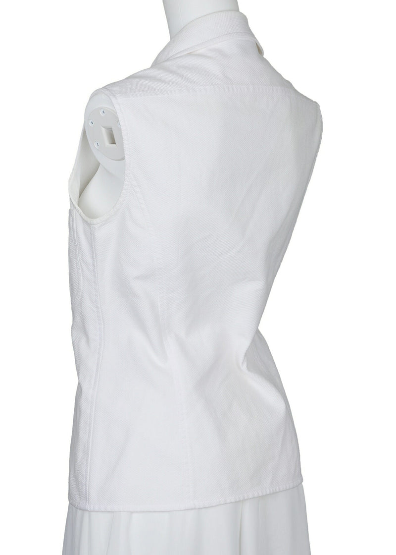 Ärmelloses Hemd, Kragen, Baumwolle, Weiß, Silberfarbene Metallteile, Gebraucht