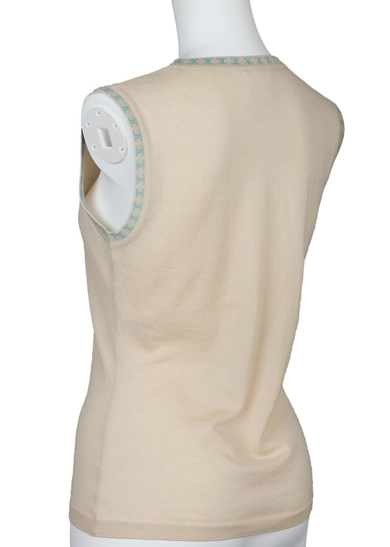 Gebrauchte ärmellose Weste, Coco Mark, gestrickt, Kaschmir, Beige, goldfarbene Hardware, gebraucht