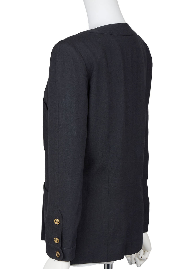 Pre-Owned Kragenlose Jacke, Oberbekleidung Mantel, Langarm, Leinen, Schwarz, Goldfarbene Hardware, Pre-Owned