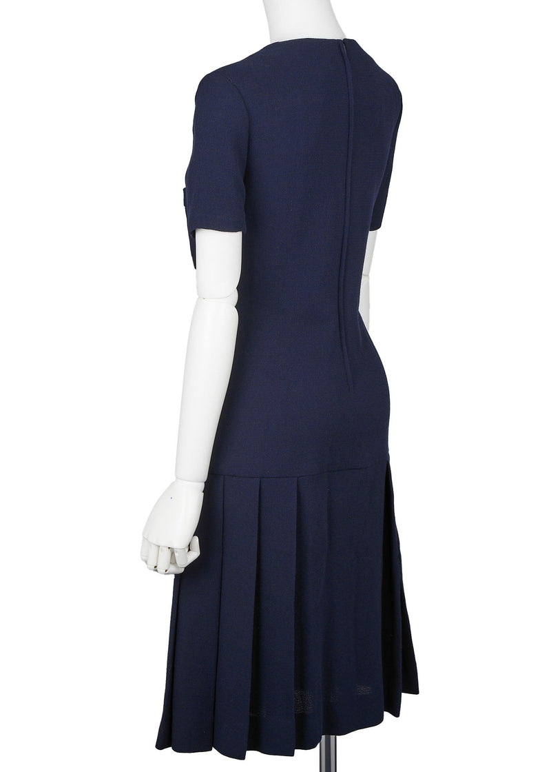 Gebrauchtes Kleid, Coco Button Plissee, Wolle, Marineblau, Goldfarbene Hardware, Gebraucht