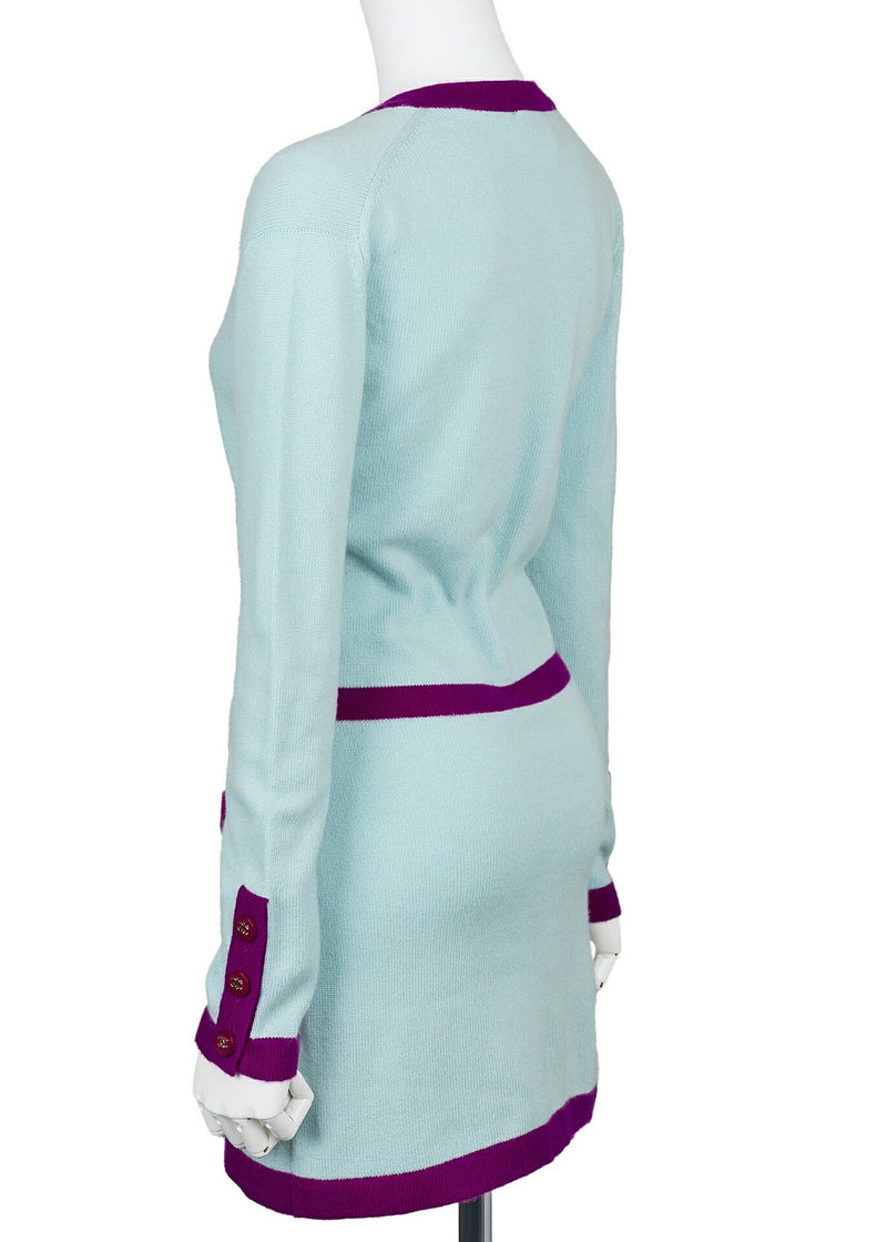 Gebrauchtes Kleid, Langarm, Coco-Knopf, Kaschmir, Blau, Goldfarbene Hardware, Gebraucht