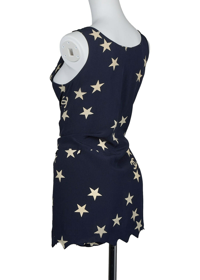 Pre-Owned Ärmelloses Top und Rock Set, Coco Mark Star, Seide, Schwarz, Goldfarbene Metallteile, Pre-Owned