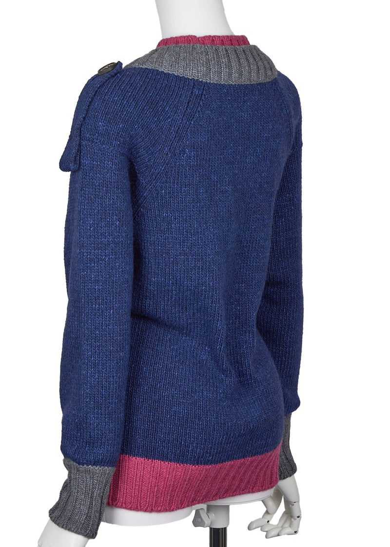 Gebrauchter Strickpullover, Coco-Knopf, Kaschmir-Seiden-Wollmischung, Marineblau, goldfarbene Metallteile, gebraucht