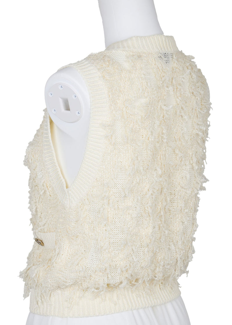 Pre-Owned Strickweste, Camisole, Baumwollmischung, Elfenbein, Goldfarbene Metallteile, Pre-Owned