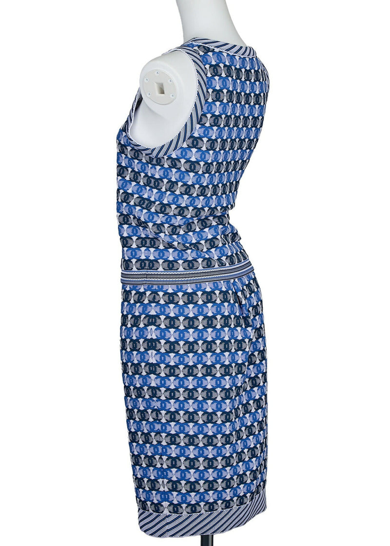 Pre-Owned Set Up Ensemble, Coco Mark CC Jacquard, Baumwollmischung, Blau, Silberfarbene Hardware, Pre-Owned
