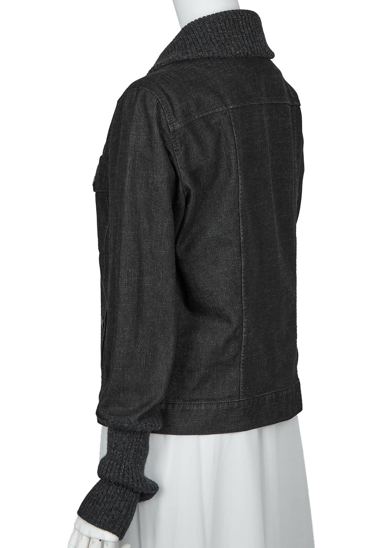 Gebrauchte Jacke, Strick-Denim, Coco-Knopf, Baumwollmischung, Schwarz, silberfarbene Hardware, gebraucht