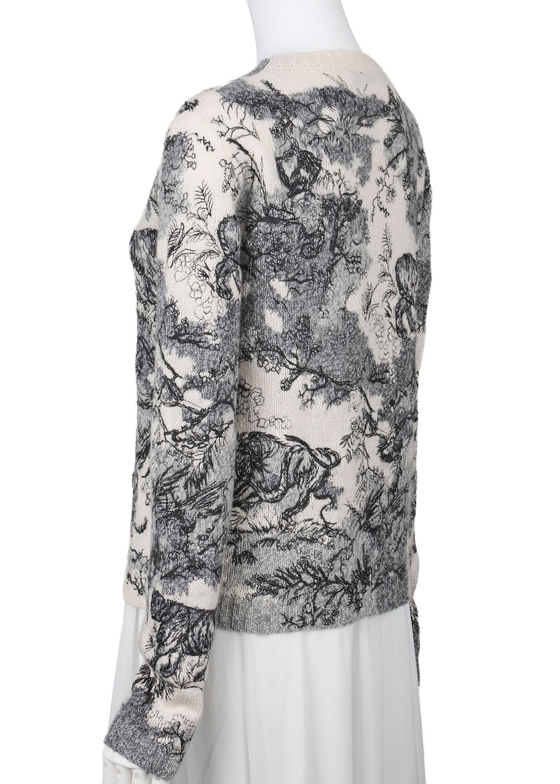 Pre-Owned All-Over Cashmere Sweater 36 White x Black Knit Top Long Sleeve Cut & Sew Branded Pre-Owned
