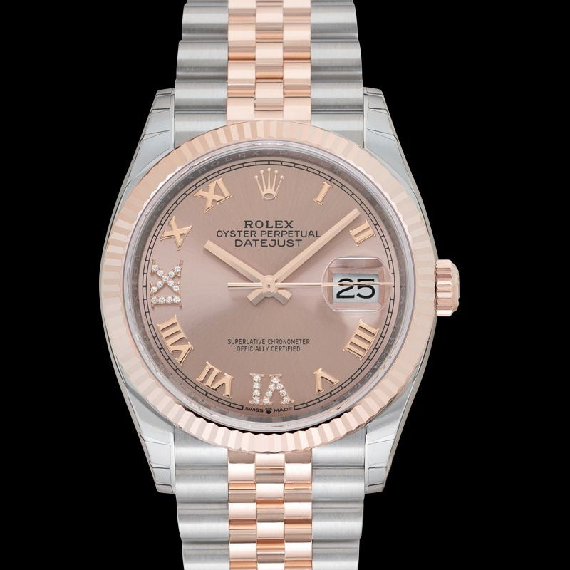 Datejust 36 mm Rose mit Diamanten besetztes Zifferblatt aus Edelstahl, Everose-Gold 126231-0027
