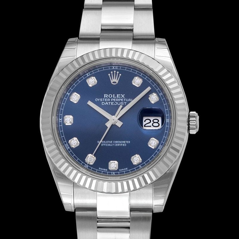 Datejust 41 mm, blaues Zifferblatt aus Edelstahl, Weißgold 126334-0015