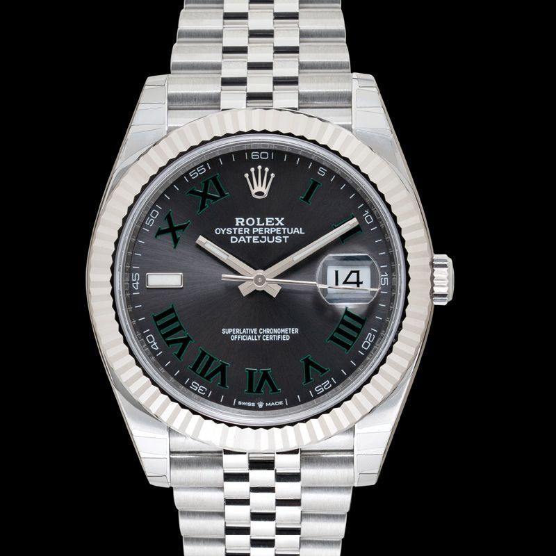 Datejust 41 mm, schiefergraues Zifferblatt aus Edelstahl, Weißgold 126334