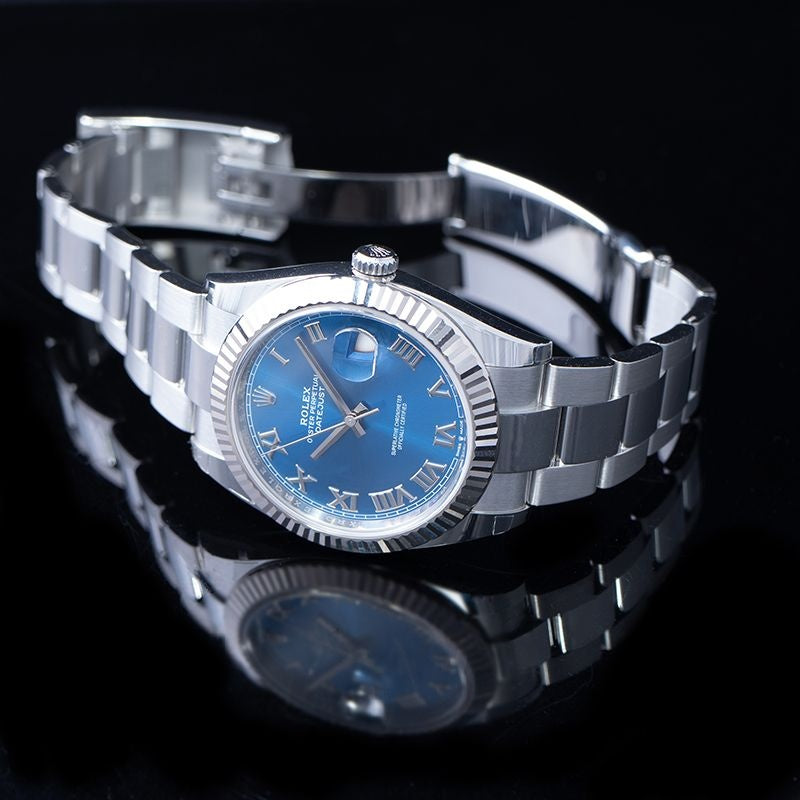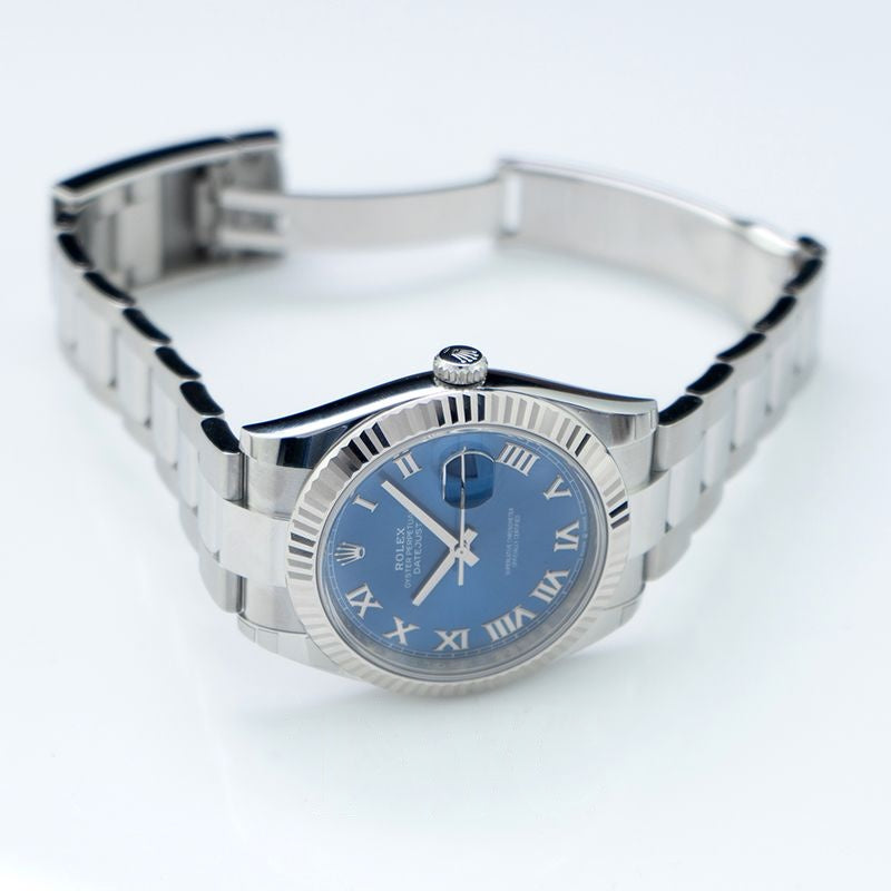 Datejust 41 mm, blaues Zifferblatt aus Edelstahl, Weißgold 126334-0025