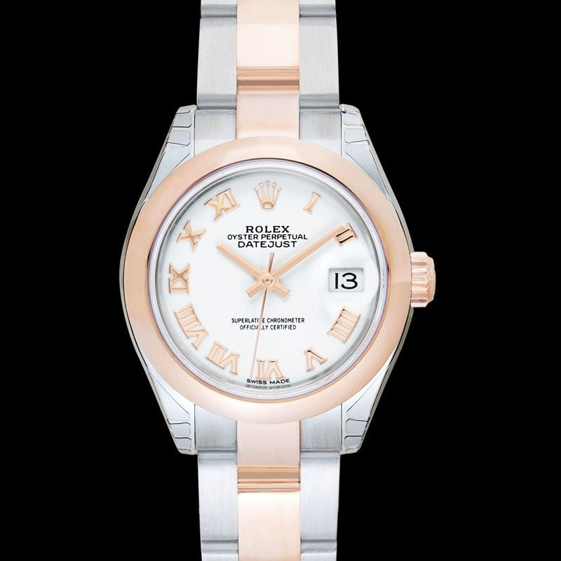 Lady Datejust 28,00 mm, weißes Zifferblatt aus Edelstahl, Everose-Gold 279161