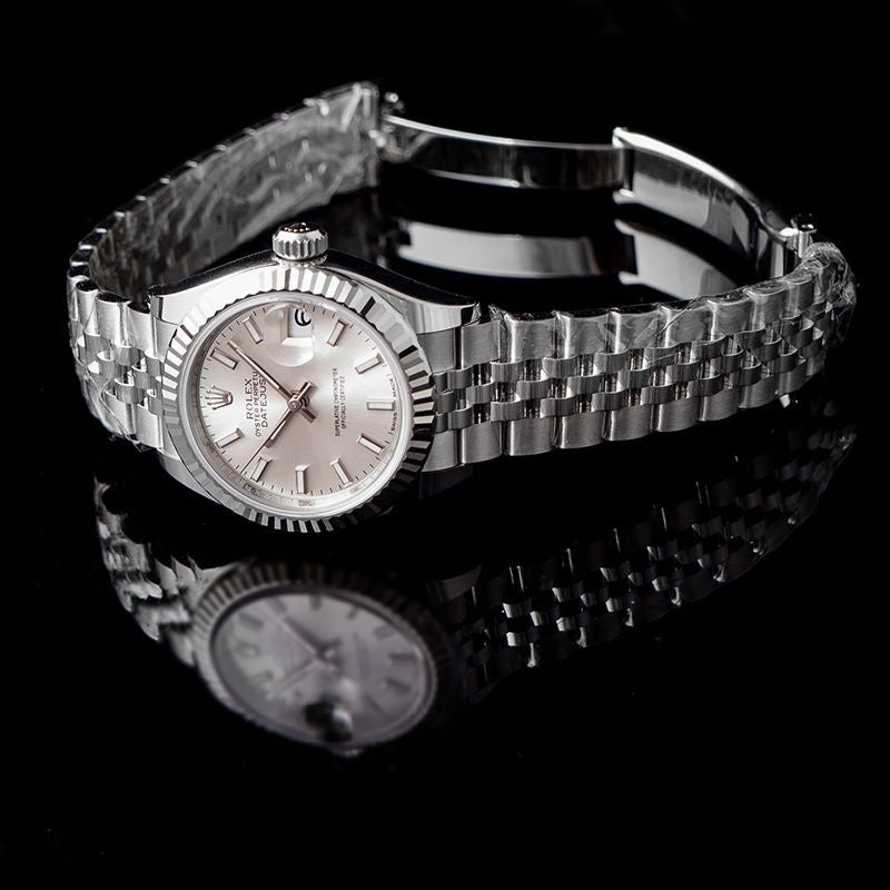 Lady Datejust 28 mm silbernes Zifferblatt aus Edelstahl, Weißgold 279174-0005