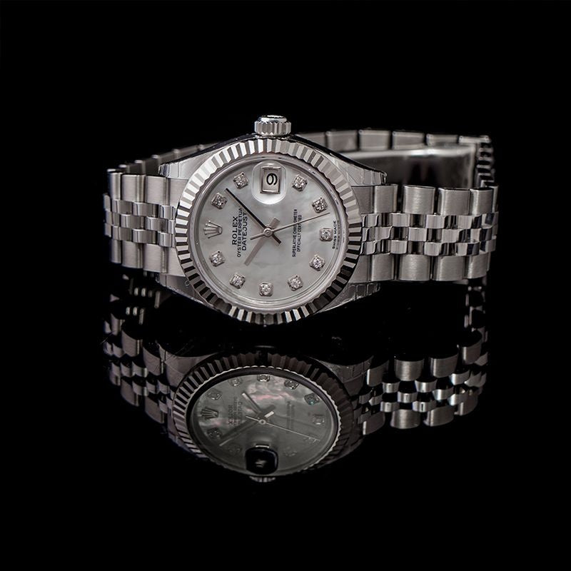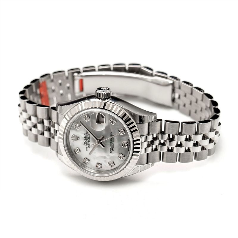 Lady Datejust 28 mm Perlmuttzifferblatt aus Edelstahl, Weißgold 279174-0009G