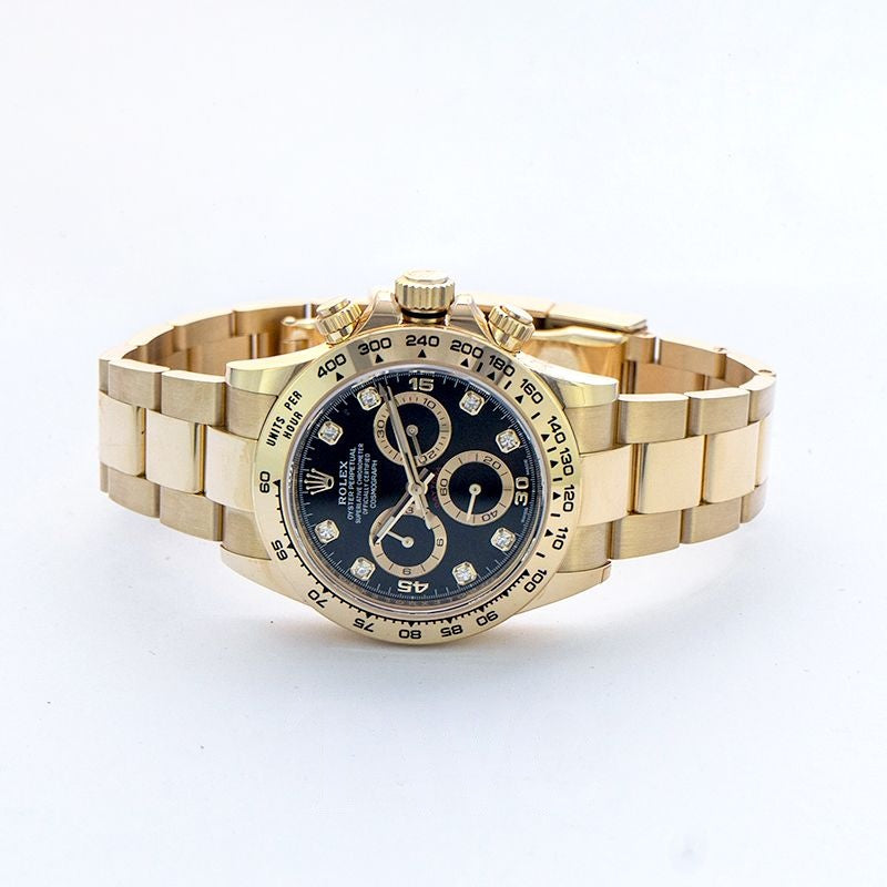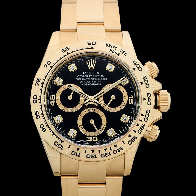Cosmograph Daytona 40 mm schwarzes Zifferblatt in 18 Karat Gelbgold 116508-0016