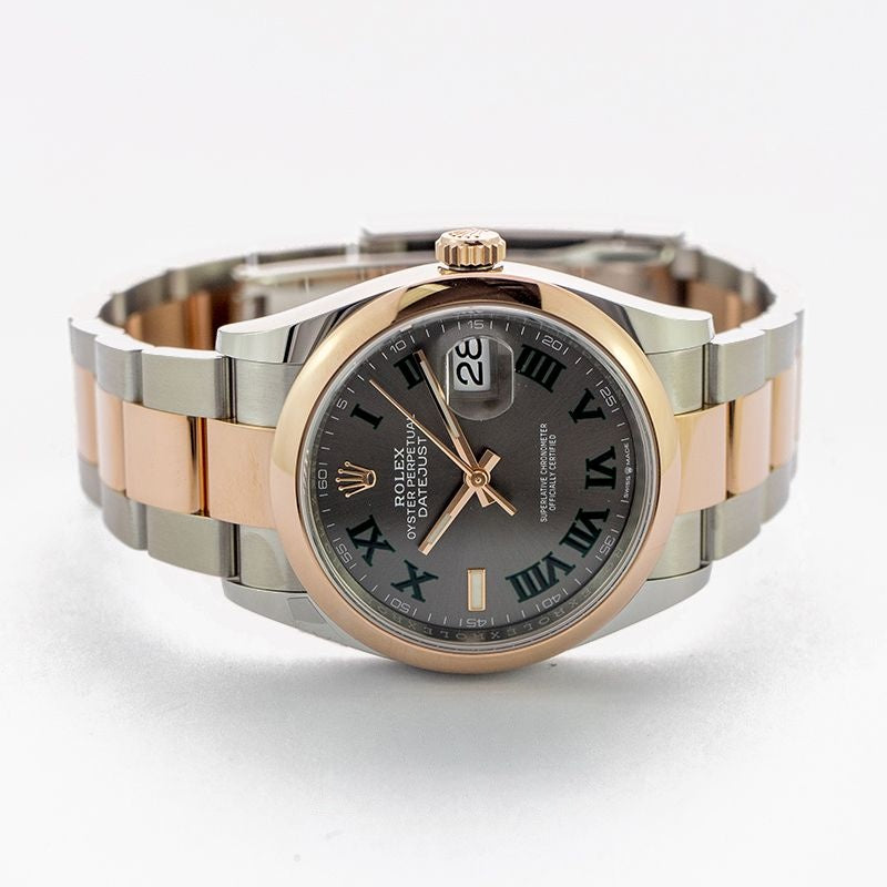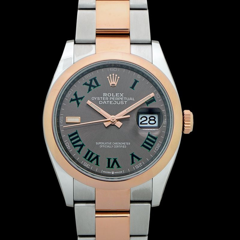 Datejust 36 mm, graues Zifferblatt aus Edelstahl, Everose-Gold 126201-0030
