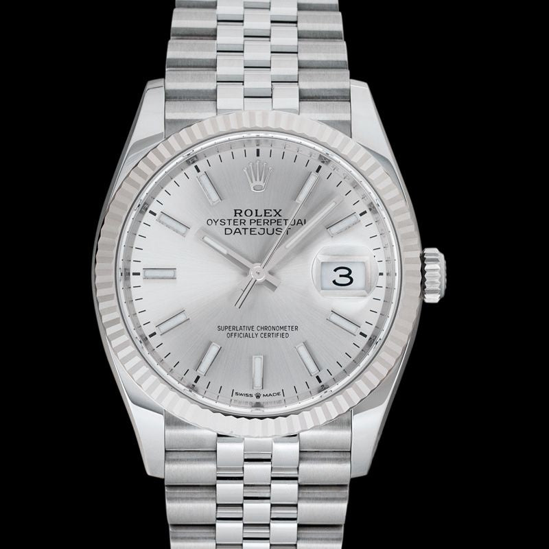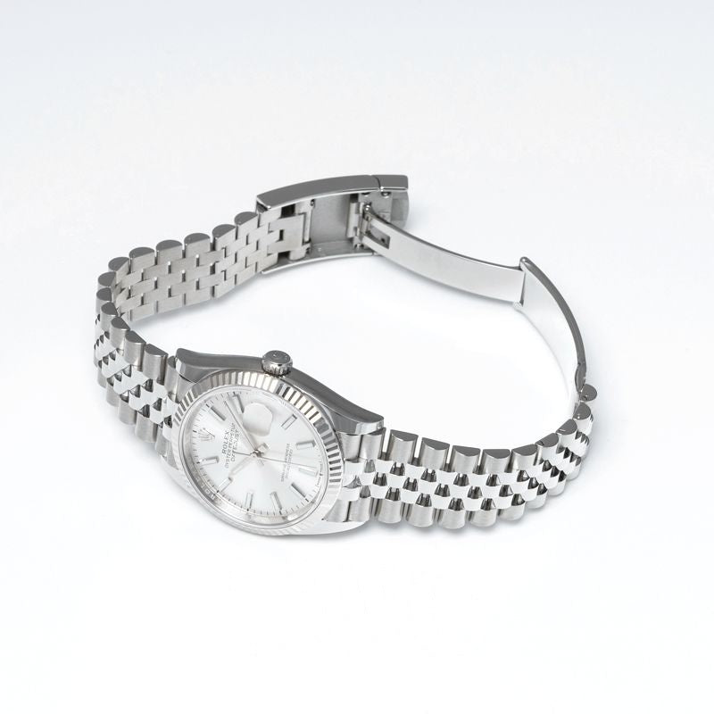Datejust 36 mm, silbernes Zifferblatt aus Edelstahl, Weißgold 126234-0013