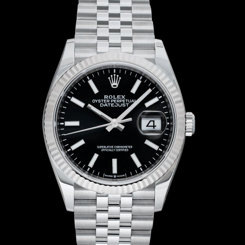 Datejust 36 mm, schwarzes Zifferblatt aus Edelstahl, Weißgold 126234-0015