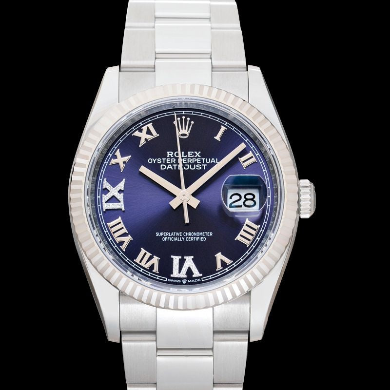Datejust 36 mm, violettes Zifferblatt aus Edelstahl, Weißgold 126234-0022