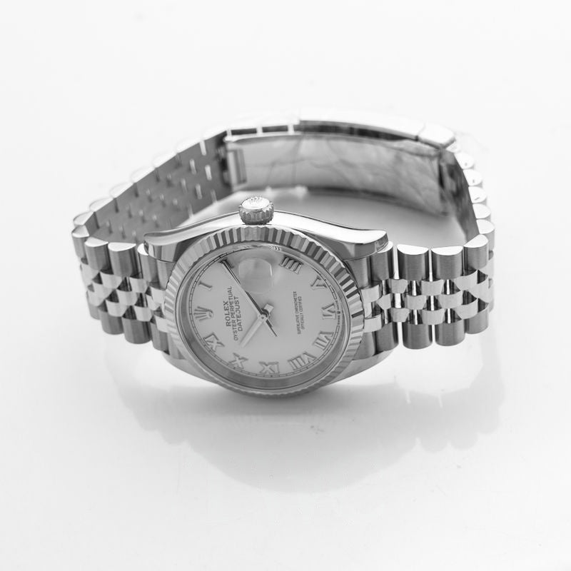 Datejust 36 mm, weißes Zifferblatt aus Edelstahl, Weißgold 126234-0025
