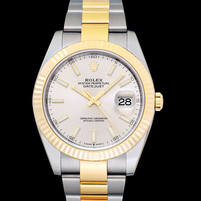 Datejust 41 mm, silbernes Zifferblatt aus Edelstahl, Gelbgold 126333-0001