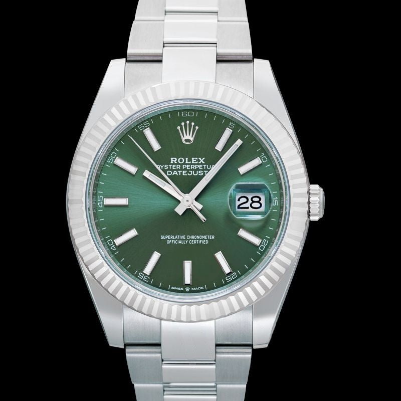 Datejust 41 mm, grünes Zifferblatt aus Edelstahl, Weißgold 126334-0027