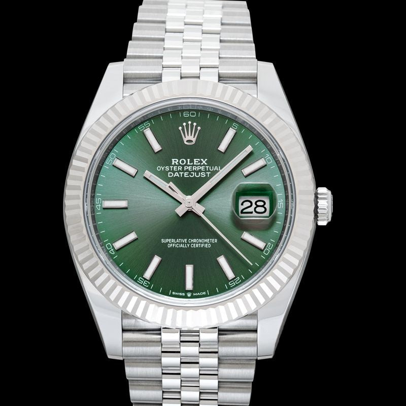 Datejust 41 mm, grünes Zifferblatt aus Edelstahl, Weißgold 126334-0028