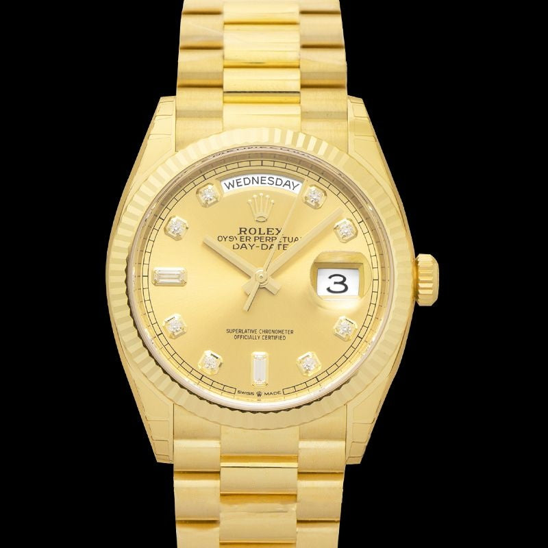 Datejust 36 mm Champagner-Zifferblatt in 18 Karat Gelbgold 128238-0008