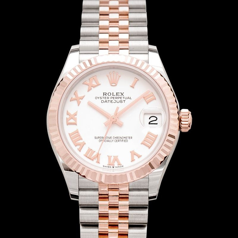 Datejust 31 mm, weißes Zifferblatt aus Edelstahl, Everose-Gold 278271-0002