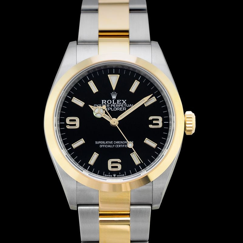 Explorer 36 mm, schwarzes Zifferblatt aus Edelstahl, Gelbgold 124273-0001