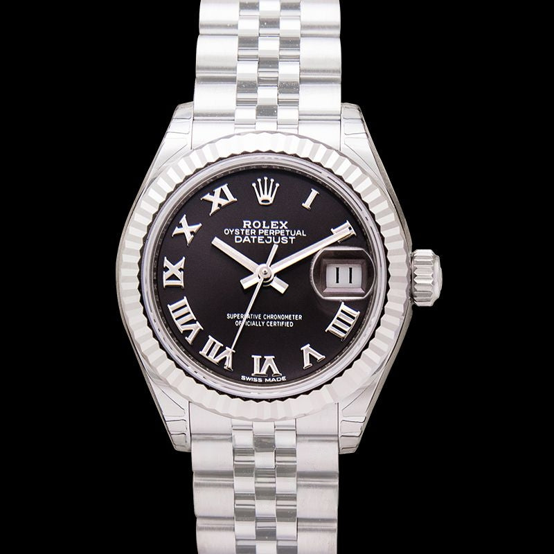 Lady Datejust 28 mm silbernes Zifferblatt aus Edelstahl, Weißgold 279174-0013