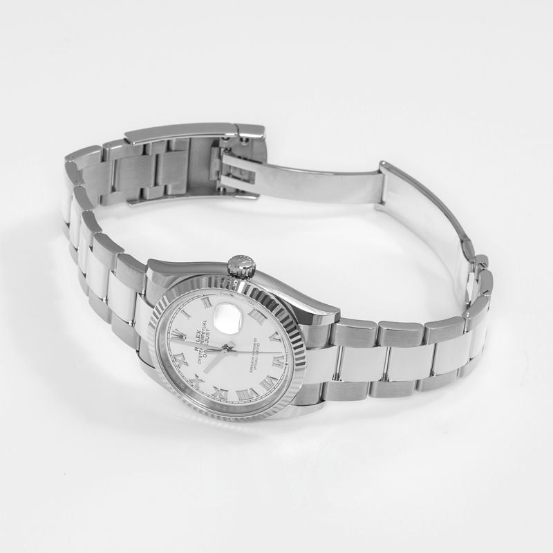 Datejust 36 mm, weißes Zifferblatt aus Edelstahl, Weißgold 126234, weiße römische Oyster