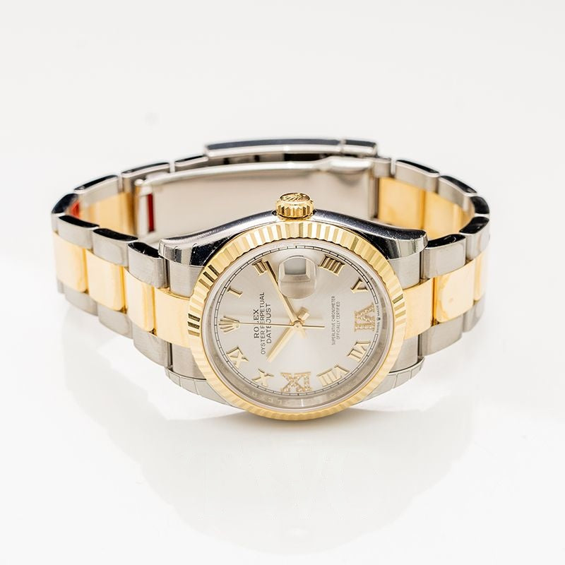 Datejust 31 mm, silbernes Zifferblatt aus Edelstahl, Gelbgold 278383RBR-0004