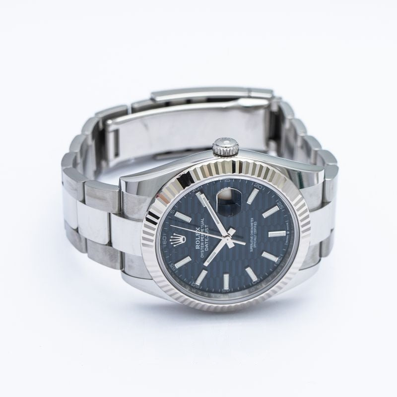 Datejust 41 mm, blaues Zifferblatt aus Edelstahl, Weißgold 126334-0031