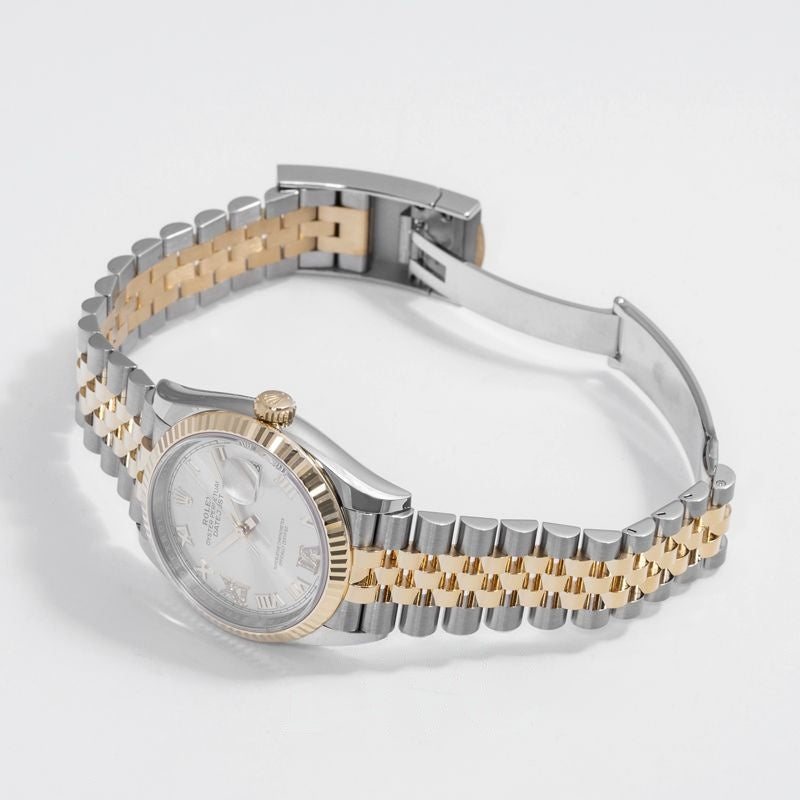 Datejust 36 mm Silber mit Diamanten besetzt Zifferblatt aus Edelstahl, Gelbgold 126233-0031G