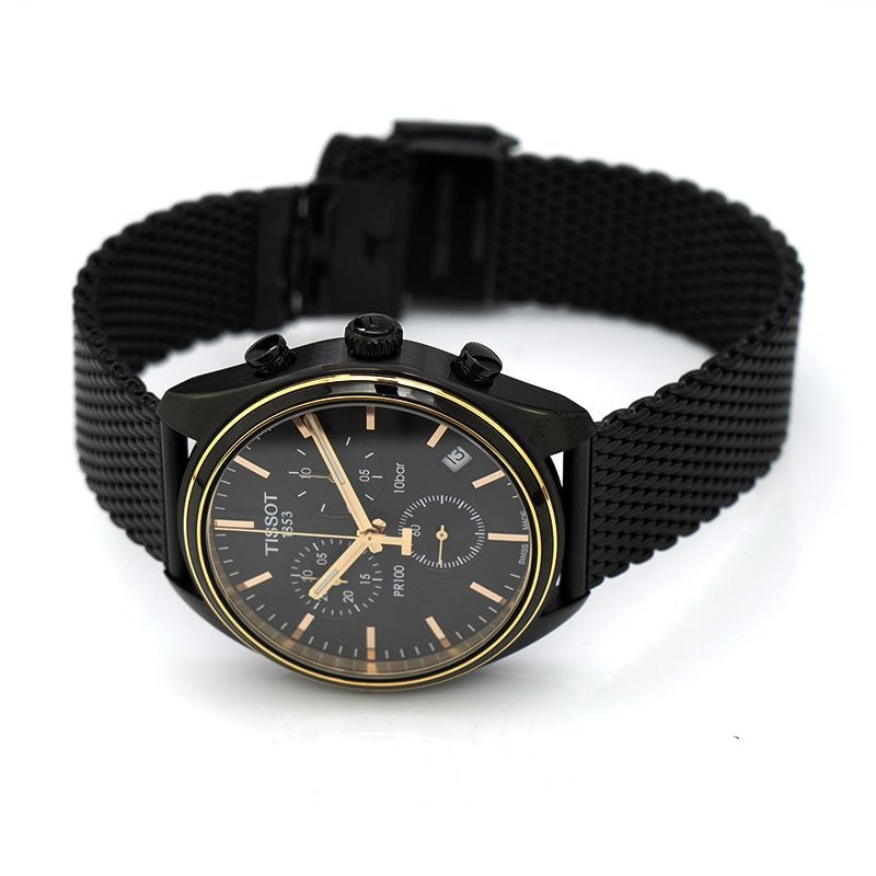 T-Sport 42 mm schwarzes Zifferblatt aus Edelstahl T100.417.37.201.00