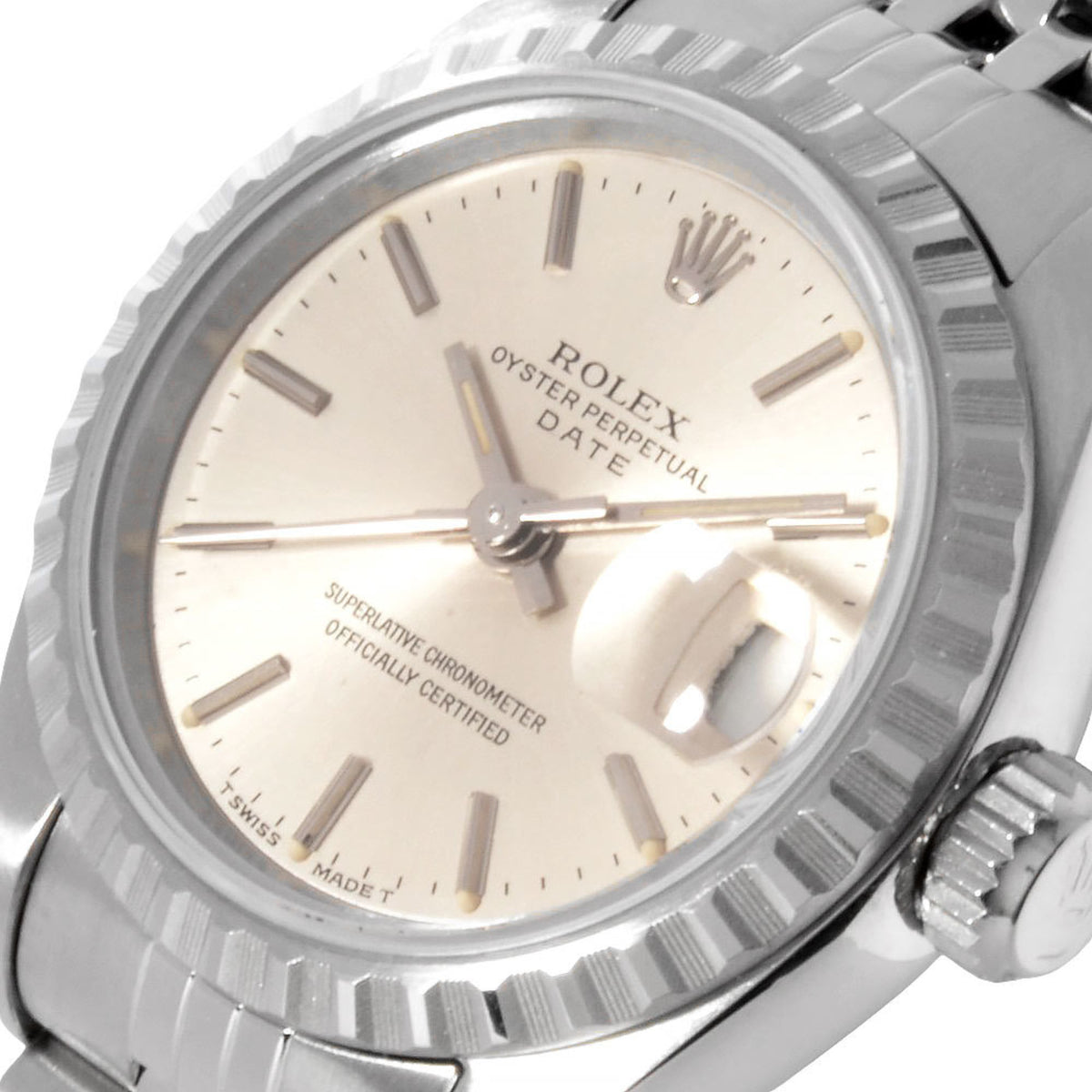 Gebrauchte Rolex ROLEX 69240 Oyster Perpetual Date Uhr Automatik Silbernes Zifferblatt Gravierte Lünette Damen