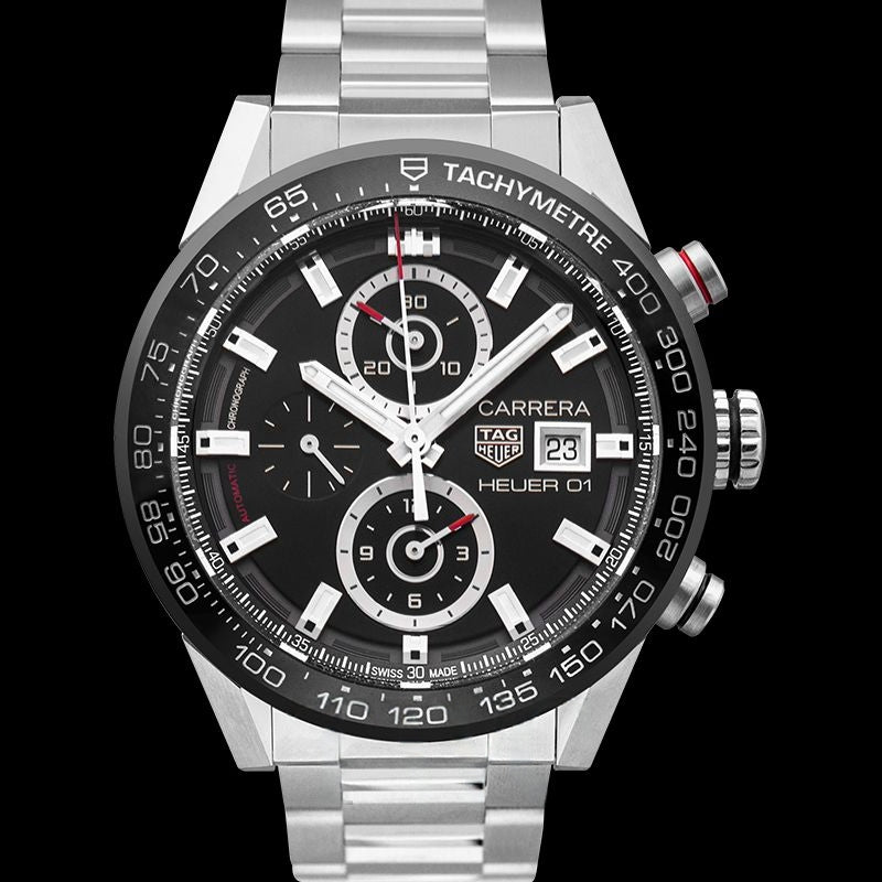 Carrera 43 mm schwarzes Zifferblatt aus Edelstahl CAR201Z.BA0714