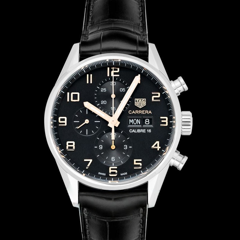 Carrera 43 mm schwarzes Zifferblatt aus Edelstahl CV2A1AB.FC6379