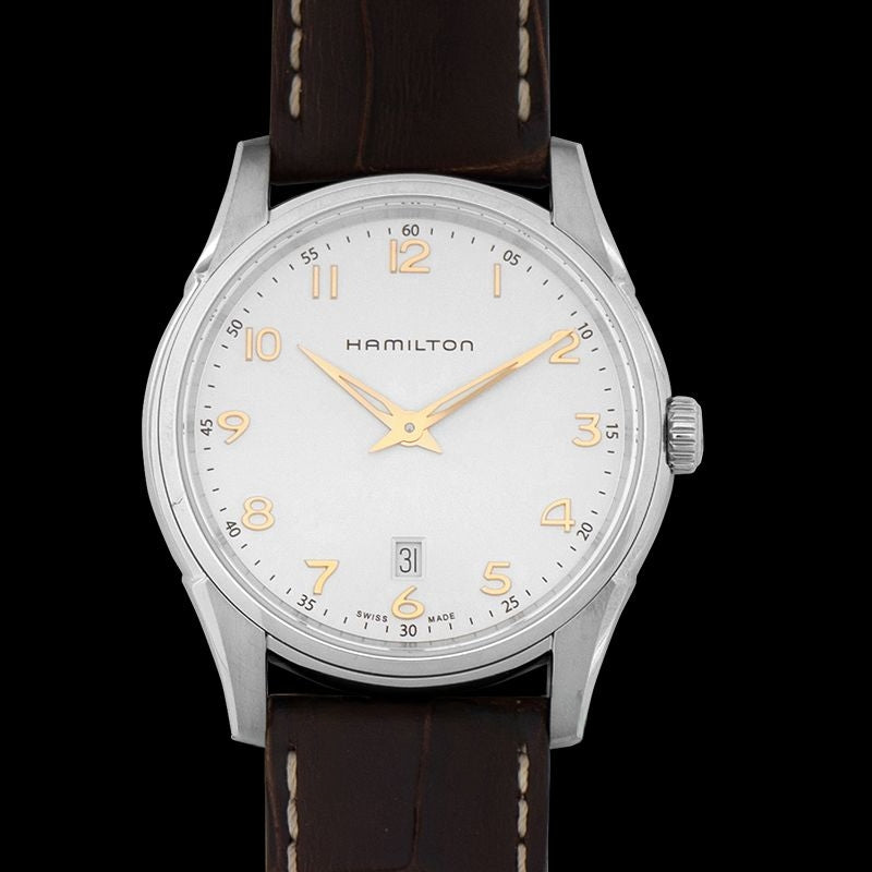 Jazzmaster 42 mm silbernes Zifferblatt aus Edelstahl H38511513