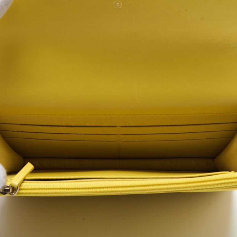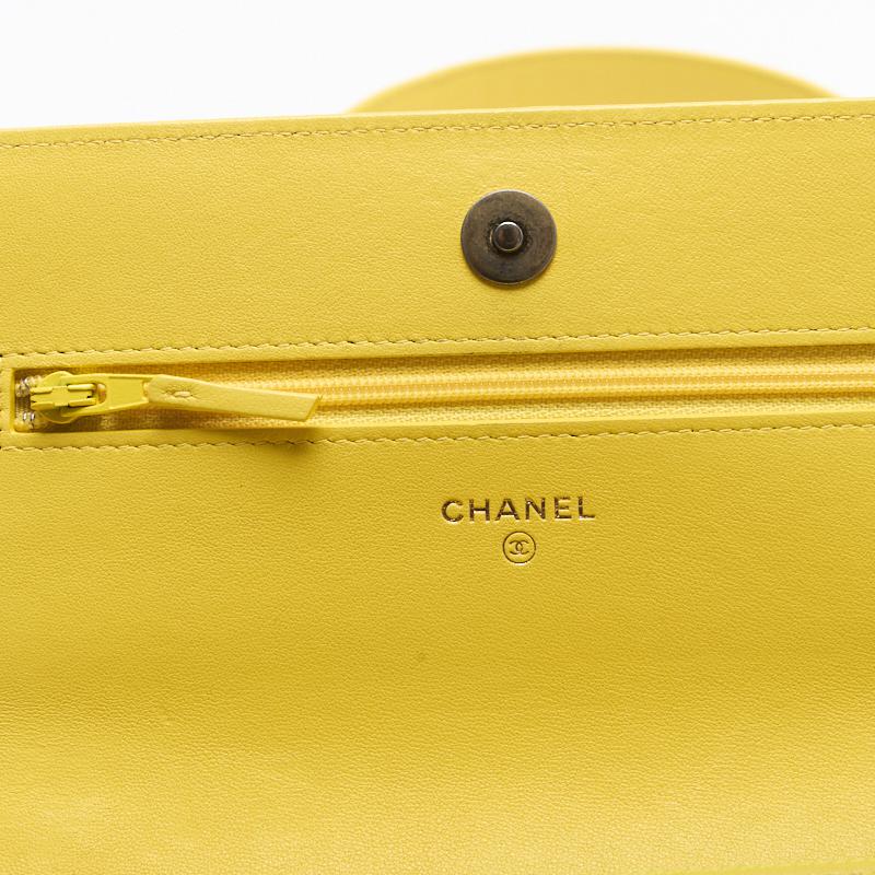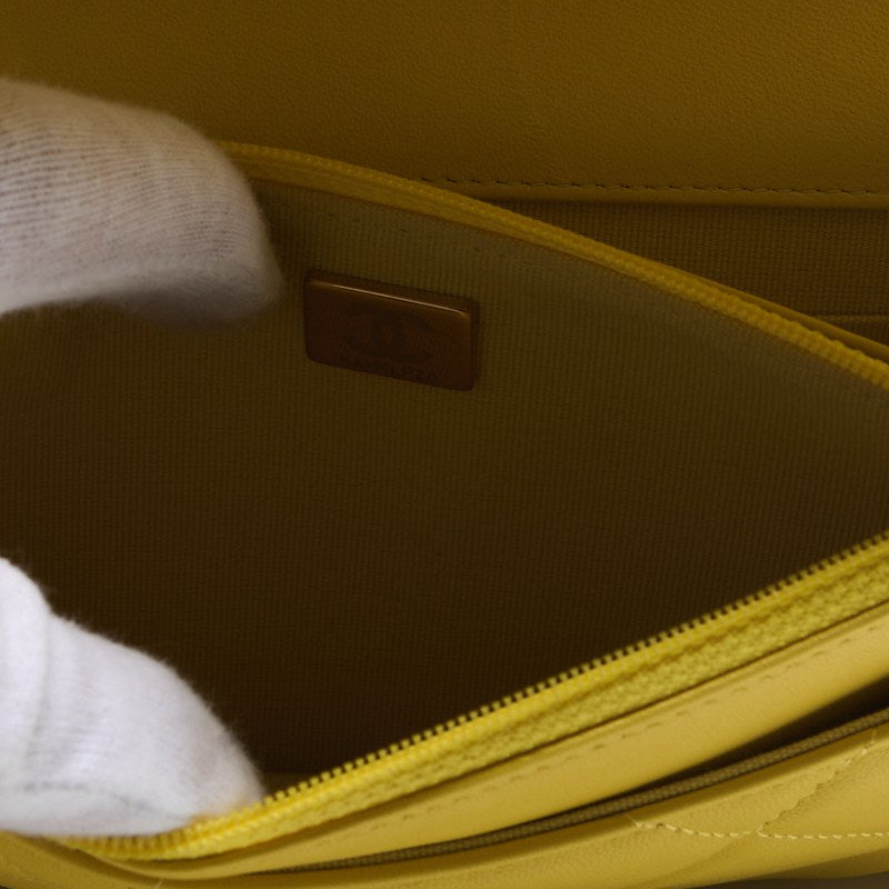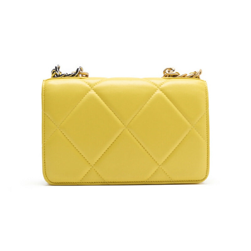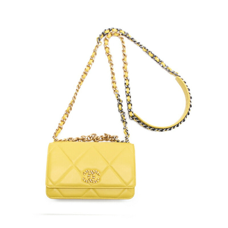 Gönnen Sie sich Luxus mit der CHANEL Chanel 19 Matelassé Chain Wallet , einer atemberaubenden Faltbrieftasche aus edlem Lammleder in einem exquisiten Gelbton. Dieses elegante Accessoire ist für die moderne Frau konzipiert, die Stil und Funktionalität gleichermaßen schätzt.