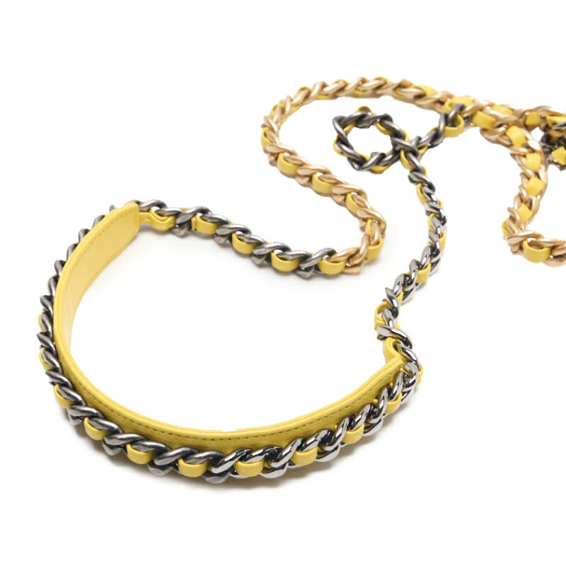 Pre-Owned Chain Wallet Matelassé Lammleder Gelbgoldfarbene Hardware Pre-Owned