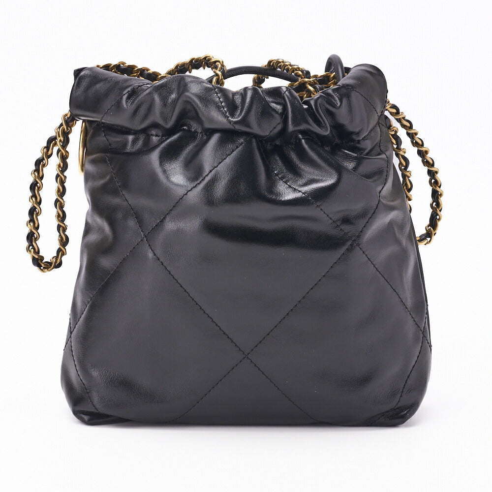 Pre-Owned 22 Mini Chain Shoulder Bag, Kordelzug, Kalbsleder, Schwarz, Goldfarbene Metallteile, Pre-Owned