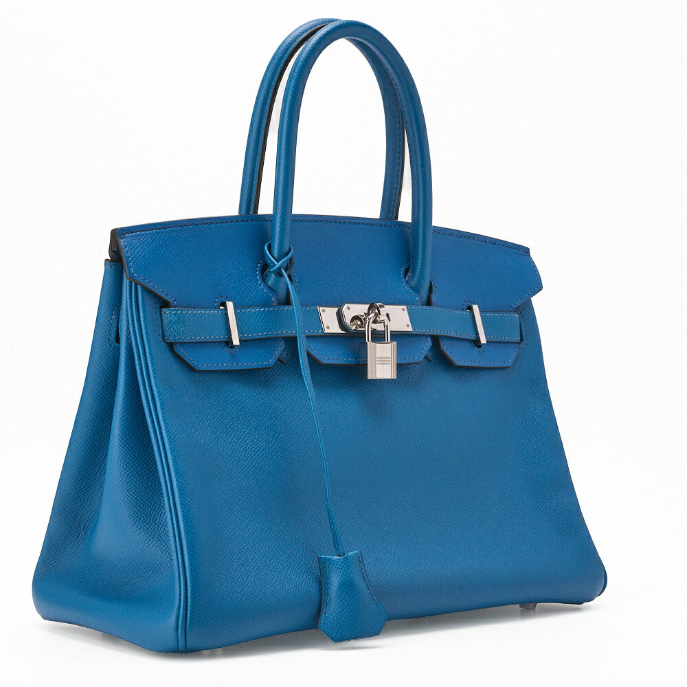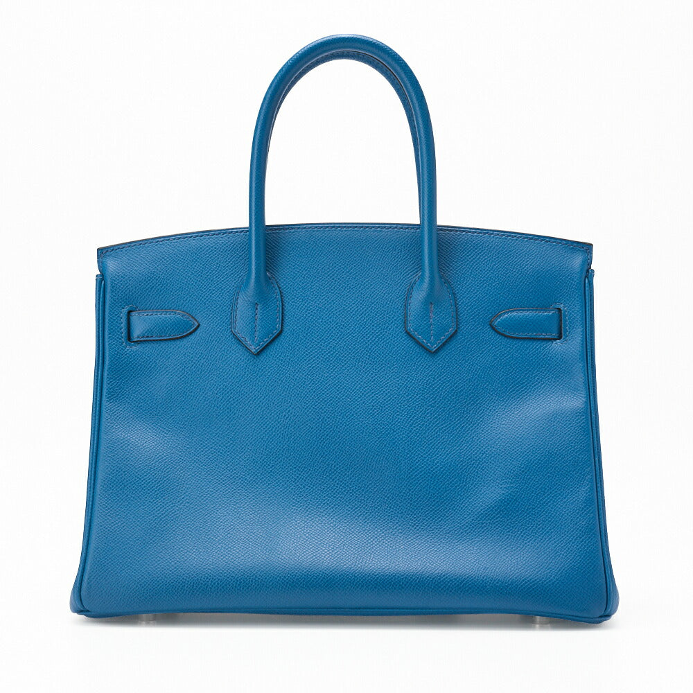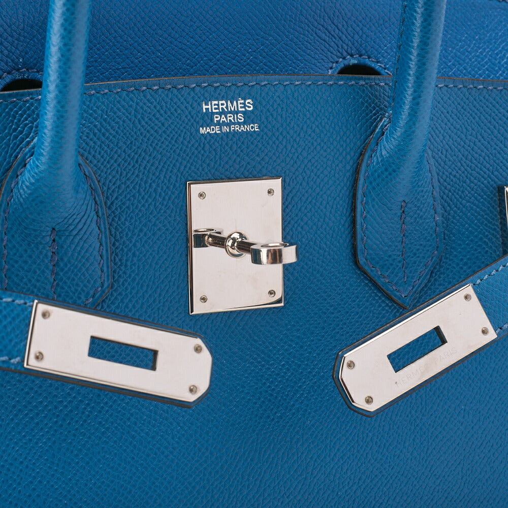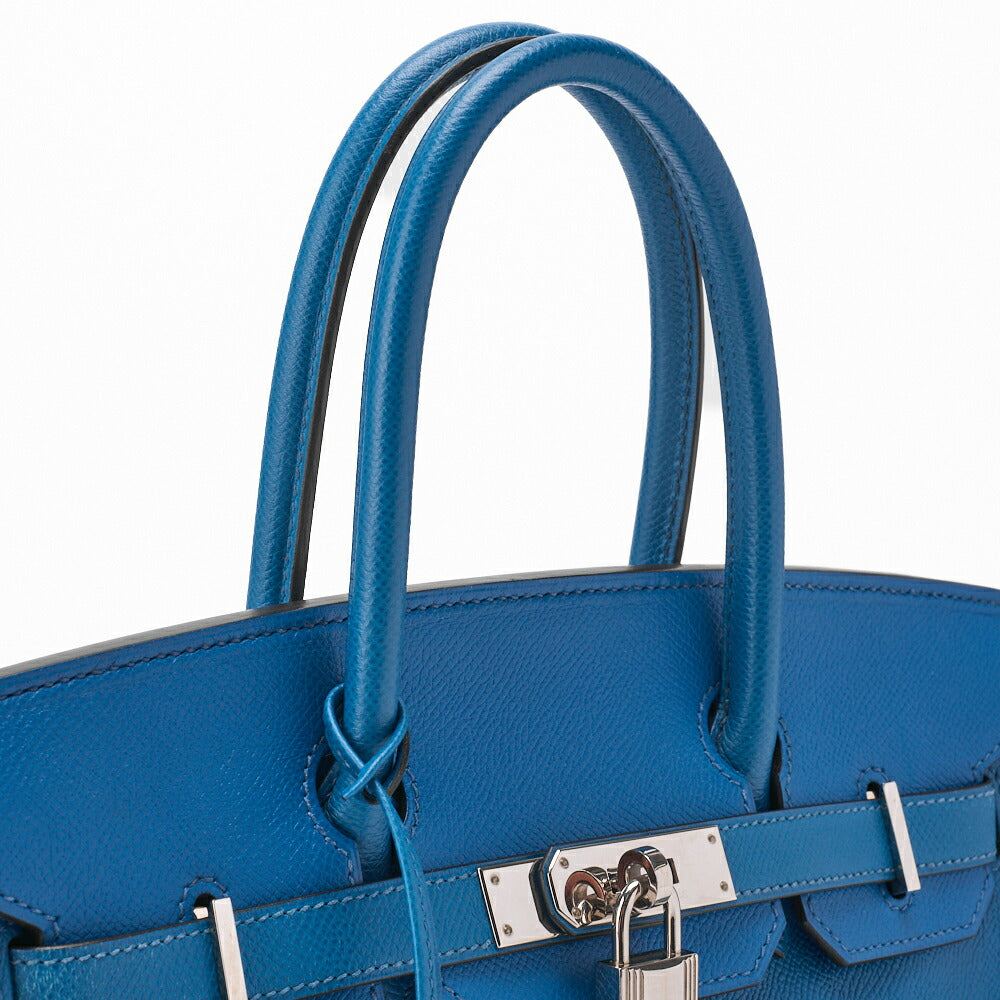 Gebrauchte Birkin 30 Handtasche Epson Blue Paon Silberfarbene Hardware Gebraucht