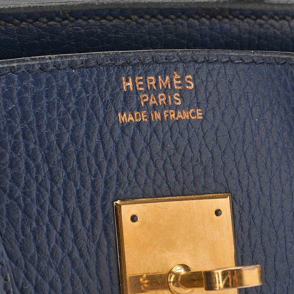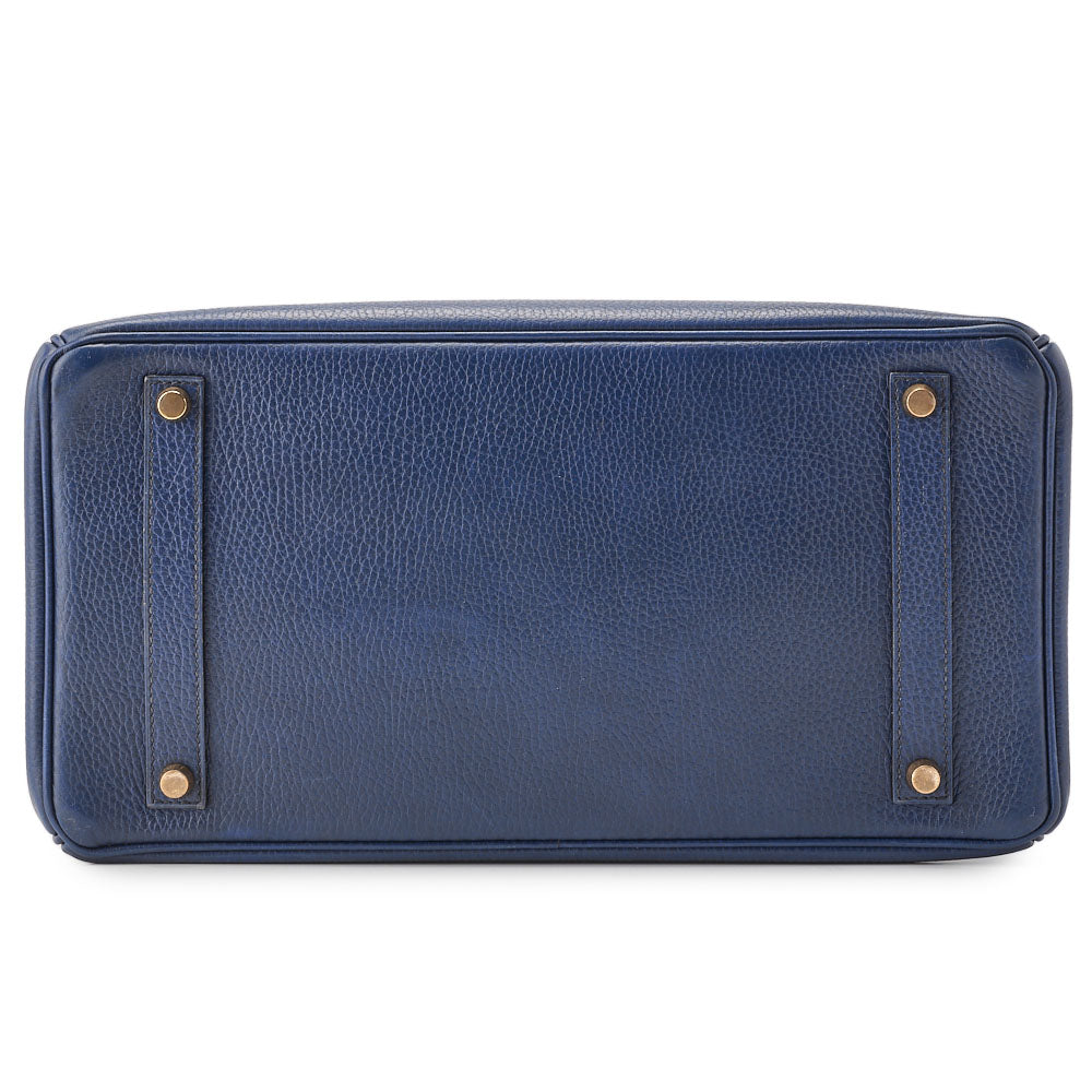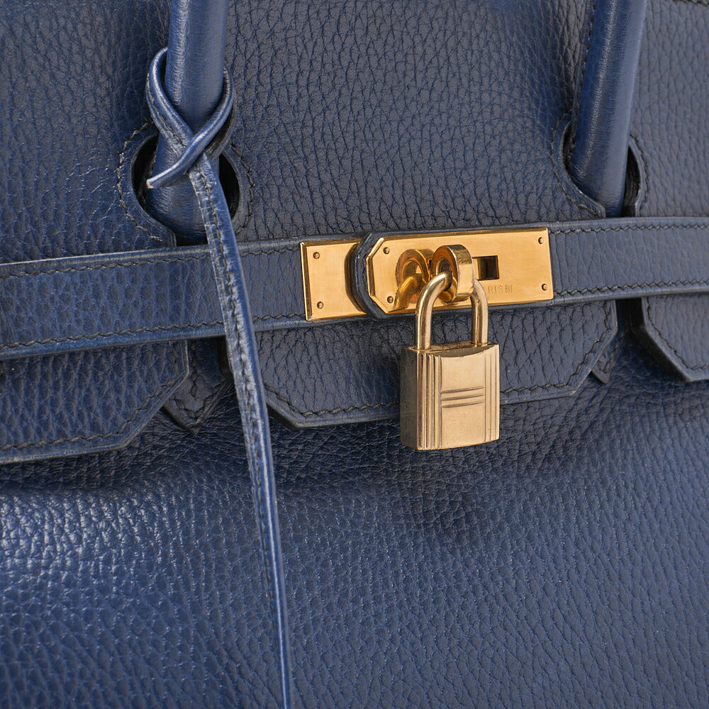 Gebrauchte Birkin 35 Handtasche, Ardennes Leder, Marineblau, Goldfarbene Metallteile, Gebraucht