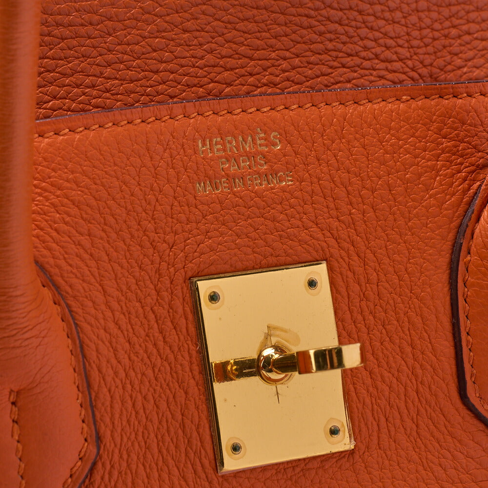 Gebrauchte Birkin 35 Handtasche Tryon Clément Leder Orange Goldfarbene Hardware Gebraucht