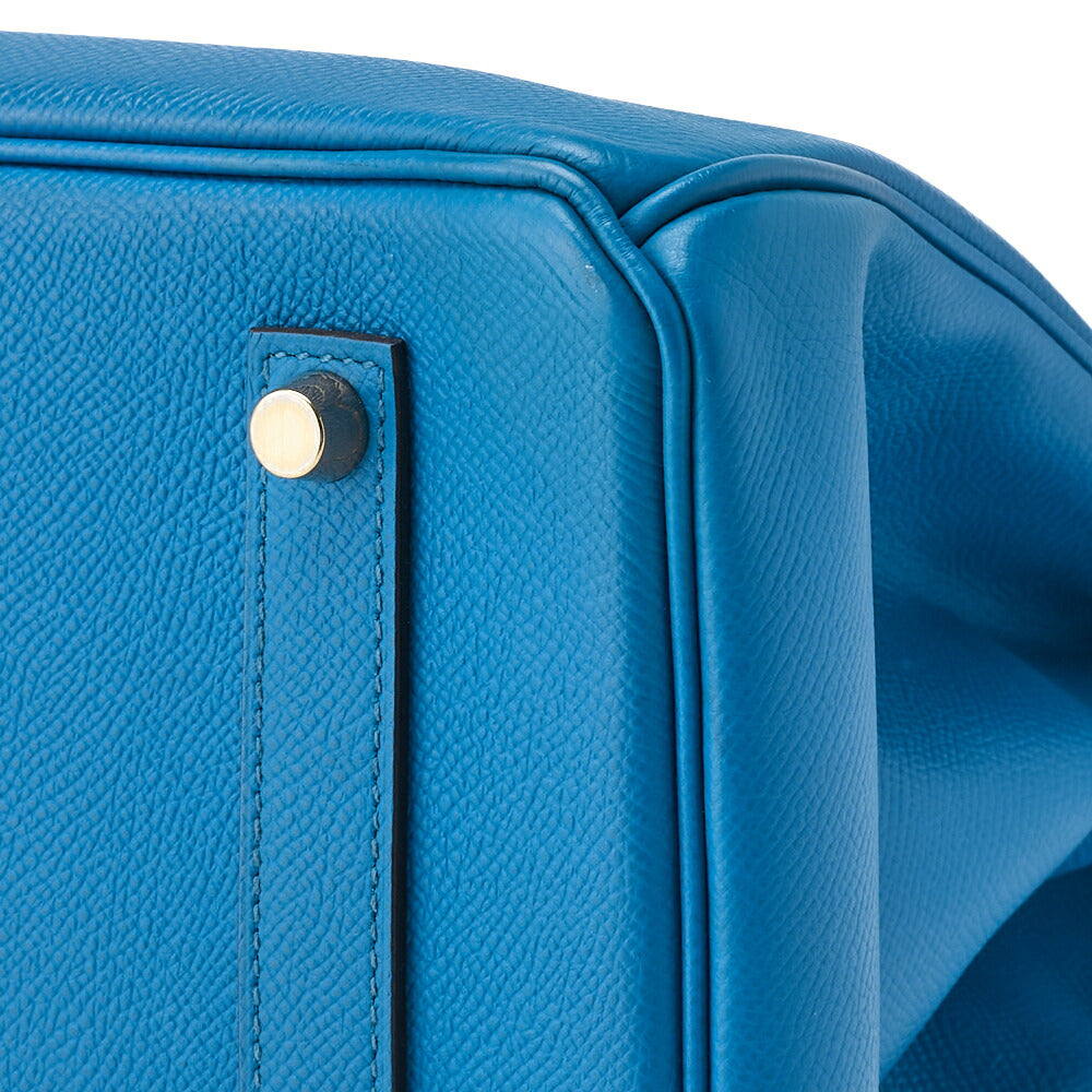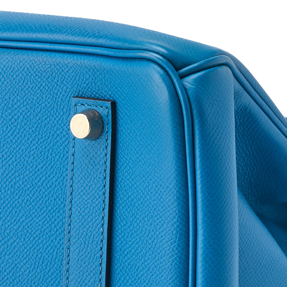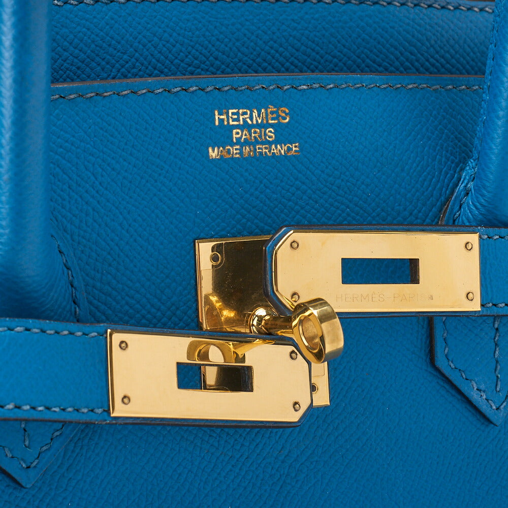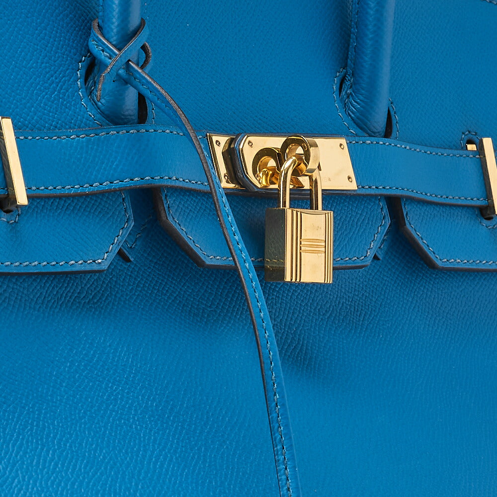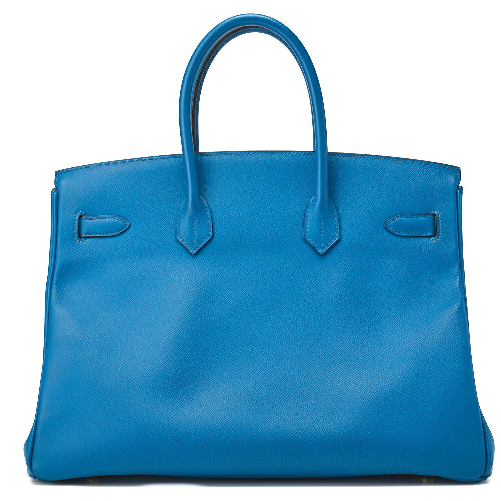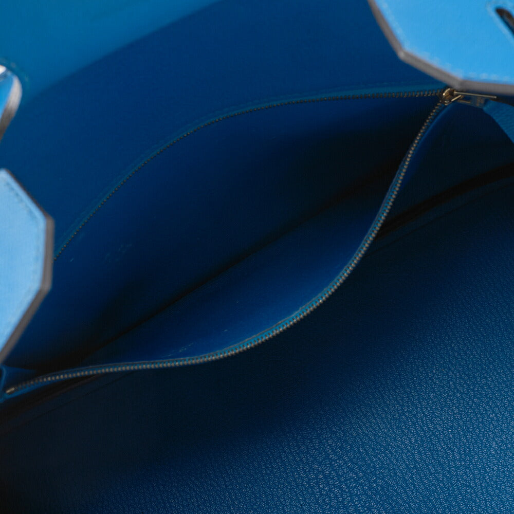 Gebrauchte Birkin 35 Handtasche Vo Epson Leder Blau Ismir Goldfarbene Hardware Gebraucht